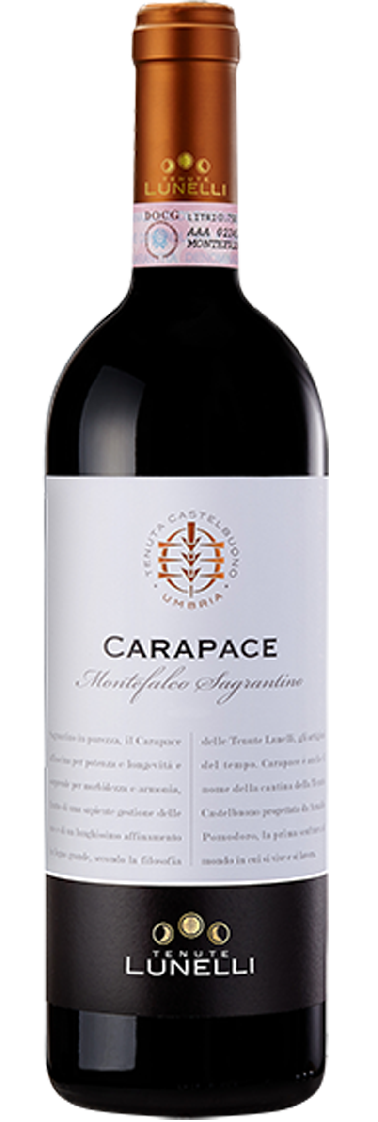 The wineries Carapace symbol located on the front label, or “shell”, represents the architectural magnum of the winery designer, legendary Italian sculptor Arnaldo Pomodoro.